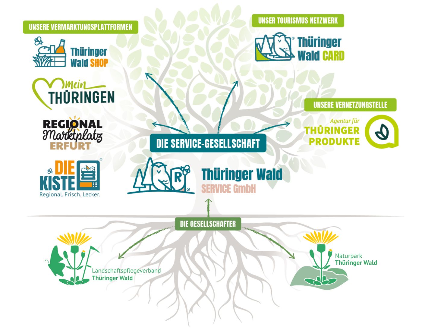 Weitere Schwerpunkte liegen im Einzel- und Großhandel mit regionalen und landwirtschaftlichen Produkten, der Planung und Durchführung von Marketing- und Werbedienstleistungen für unsere Partner sowie die aktive Gestaltung der touristischen Angebote und deren Vertrieb. Mit der Thüringer Wald Card setzen wir uns für eine nachhaltige Förderung und wirtschaftliche Unterstützung der verschiedenen Freizeiteinrichtungen ein.